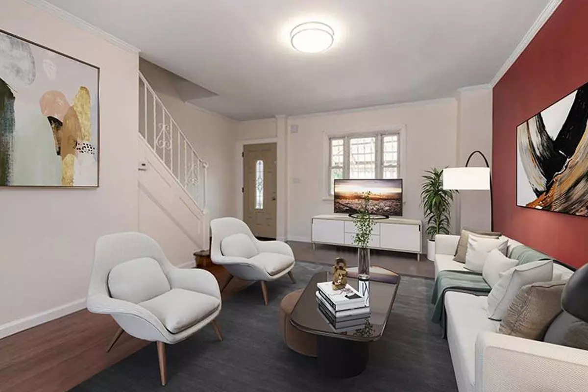 Semi-attached brick two-family duplex home sitting on a 51×100 lot. This home featured a 3 bedroom and 2 full bathrooms with 2 private balconies. The garden level rental unit is configured as a 2 bedrooms with one bathroom.