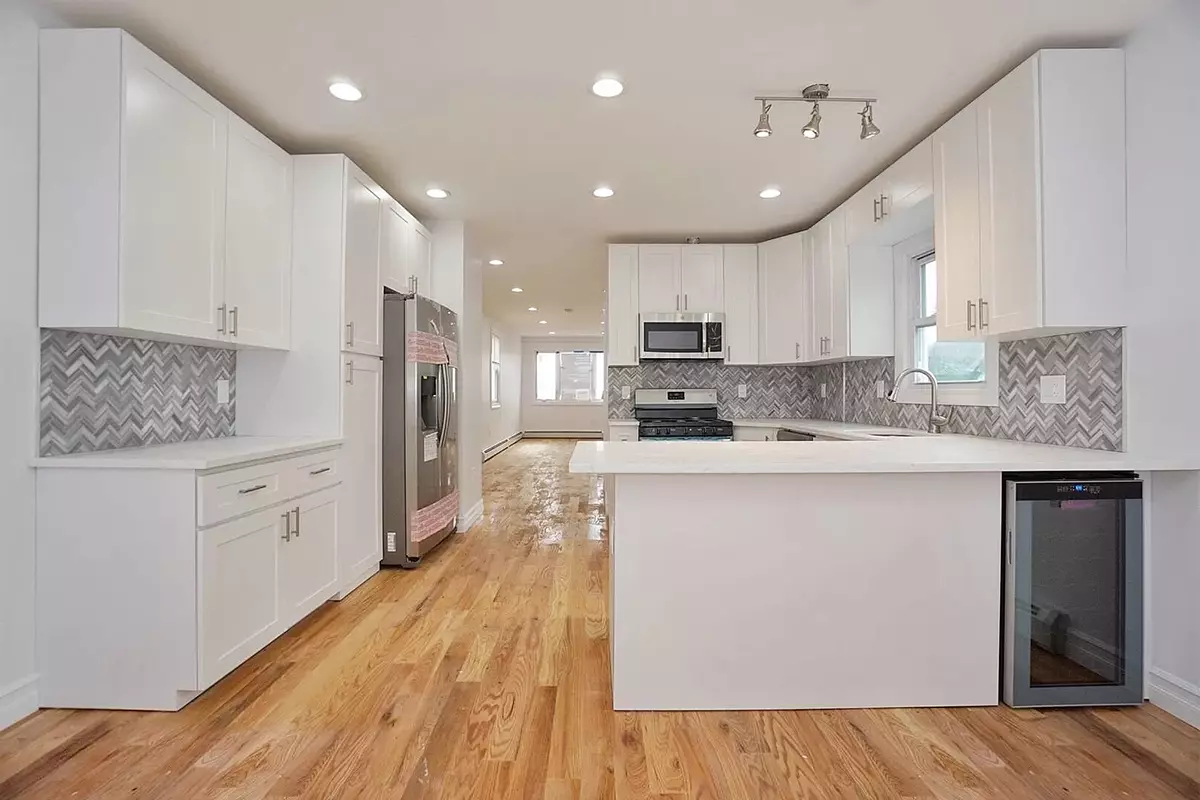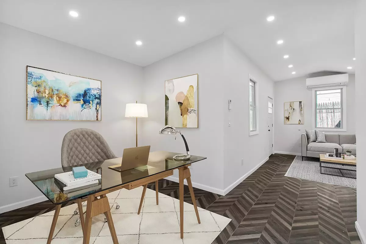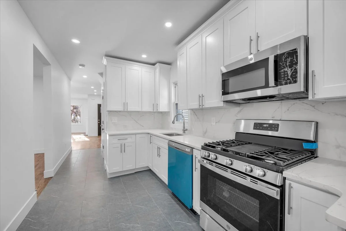 Fully renovated single-family home featuring a large chef’s kitchen, modern renovation with an open concept. 4 bedrooms, 2 full bathrooms, a powder room, private driveway, and a shed with internet cables installed making it a perfect home office.